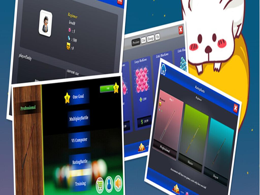 8 Ball Goalis Ein sehr einfacher Billard -Spielbetrieb. Sehr glatt laufen, Spiel ist sehr real. Game Player kann weiter kämpfen, um Geld und Erfahrung zu bekommen, um ihre Fähigkeiten zu verbessern, und kann auch Senior Cue kaufen.